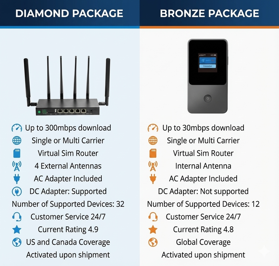 5G Diamond Plan | Virtual Sim Router | Access to AT&T, Verizon & T-MOBILE